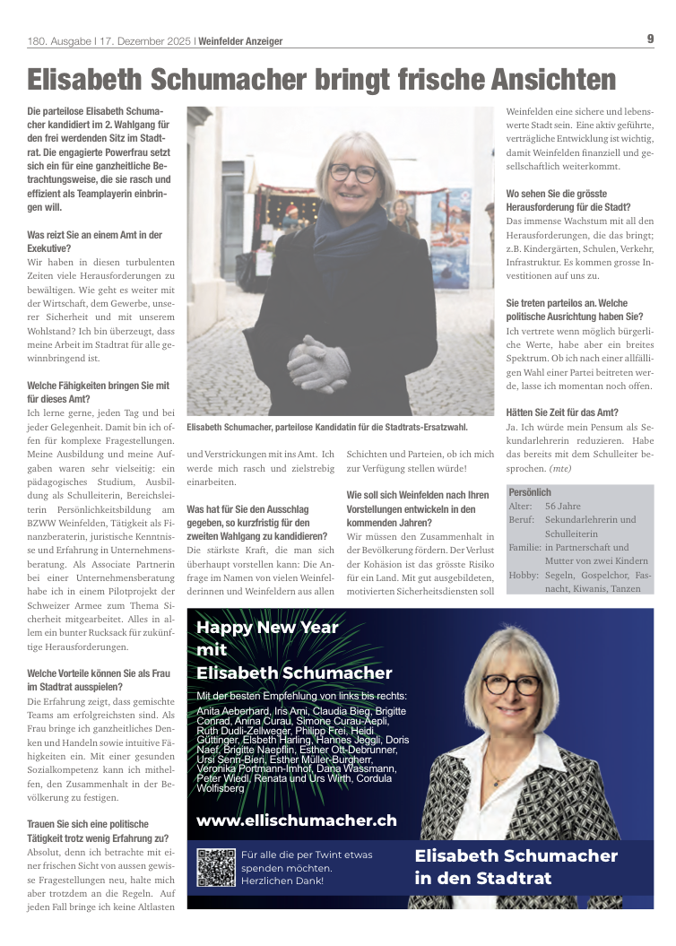 Die Wahlunterlagen sind eingetroffen? Wir ermutigen die Stimmbürgerinnen und Stimmbürger aller Altersklassen, den Wahlzettel gleich auszufüllen und in den Briefkasten zu legen. Vielen Dank für diesen wichtigen Schritt für die Zukunft Weinfeldens!